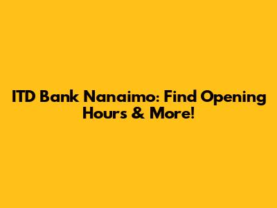 ITD Bank Nanaimo: Find Opening Hours & More!