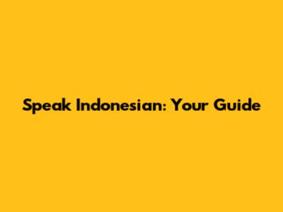 Speak Indonesian: Your Guide