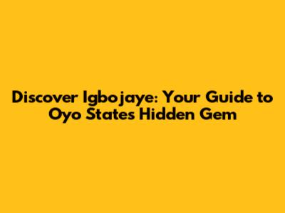 Hey everyone! Today, we're diving deep into a place that's got a ton of history and charm, nestled right here in Oyo State, Nigeria. We're talking about Igbojaye, guys! If you're looking for an authentic Nigerian experience, away from the hustle and bustle of the major cities, then Igbojaye is a spot you absolutely need to know about. It's not just a town; it's a whole vibe, a place where tradition meets everyday life, and the stories of the past are still very much alive. So, buckle up as we explore what makes Igbojaye so special, from its historical significance to its cultural richness and the warm hospitality of its people. We're going to uncover some hidden gems that will make you want to pack your bags and head over there ASAP!