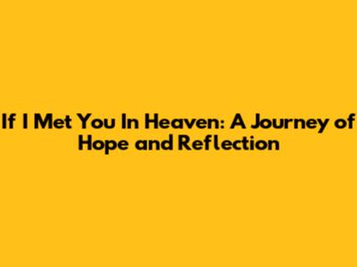 \nHave you ever wondered, if I met you in heaven, what it would be like? This is a question that stirs deep emotions and invites us to reflect on love, loss, and the hope of an afterlife. The idea of reuniting with loved ones in a serene, celestial realm has been a source of comfort and inspiration for centuries. In this article, we will explore the profound implications of this thought, delving into the emotions, beliefs, and artistic expressions it has inspired. We'll also consider how this idea shapes our perspectives on life and death, offering solace and a renewed appreciation for the precious moments we share with each other here on Earth.
