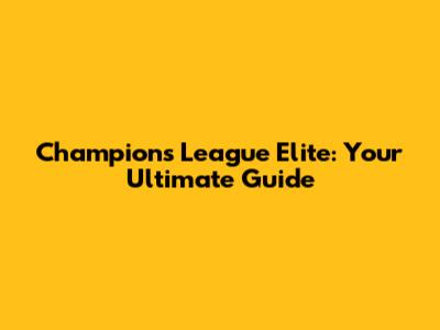 Champions League Elite: Your Ultimate Guide