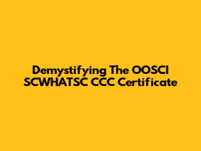 Demystifying The OOSCI SCWHATSC CCC Certificate
