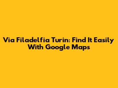 Via Filadelfia Turin: Find It Easily With Google Maps