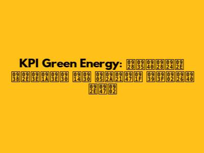 KPI Green Energy: नवीनतम समाचार और अपडेट हिंदी में
