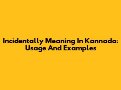 Incidentally Meaning In Kannada: Usage And Examples