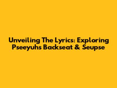 Unveiling The Lyrics: Exploring Pseeyuh's 'Backseat' & 'Seupse'