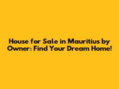 Hey guys! Are you dreaming of owning a piece of paradise? Mauritius, with its stunning beaches, vibrant culture, and laid-back lifestyle, might just be the perfect place for you. If you're looking to buy a house for sale in Mauritius by owner, you've come to the right place. This guide will walk you through everything you need to know to find your dream home without involving real estate agents, potentially saving you some serious cash! Let's dive in and explore the exciting world of Mauritian real estate!
