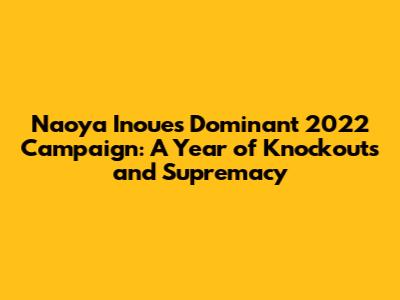 What an absolutely sensational year it was for Naoya Inoue in 2022, guys! If you're a boxing fan, you were treated to some truly masterful performances from 'The Monster.' He didn't just win; he dominated, solidifying his status as one of the pound-for-pound best in the sport. This wasn't just another year on the calendar; it was a year where Inoue showcased his unparalleled power, precision, and ring IQ, leaving opponents in his wake and fans clamoring for more. We saw him take on challenging opponents and emerge victorious, often in spectacular fashion. It was a testament to his dedication, his skill, and that sheer, unadulterated killer instinct that makes him so captivating to watch. Seriously, if you missed out on Inoue's fights in 2022, you missed out on some pure boxing artistry. He's not just a fighter; he's a phenomenon, and his 2022 run was a perfect example of why the boxing world is so excited about him. We're talking about a guy who consistently delivers, who raises the bar with every outing, and who makes you remember why you fell in love with the sweet science in the first place. His journey through 2022 was a masterclass in what elite boxing looks like, and it’s something truly special to witness.