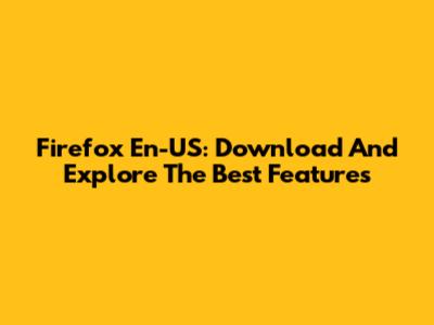 Firefox En-US: Download And Explore The Best Features