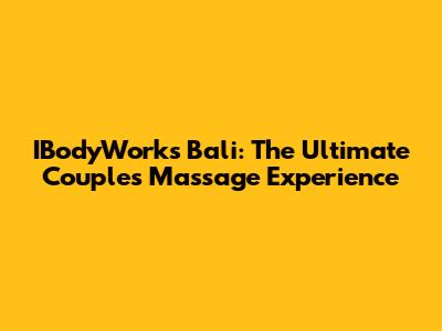 IBodyWorks Bali: The Ultimate Couples Massage Experience