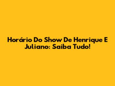 Horário Do Show De Henrique E Juliano: Saiba Tudo!