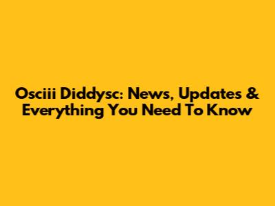 Osciii Diddysc: News, Updates & Everything You Need To Know