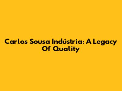 Carlos Sousa Indústria: A Legacy Of Quality