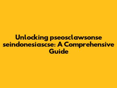 Okay, first things first. Let's address the elephant in the room: what is pseosclawsonse seindonesiascse? Given its structure, it appears to be a concatenation of several elements, possibly abbreviations or identifiers. Without specific context, pinpointing its exact meaning is challenging. However, we can analyze its components to formulate educated guesses.