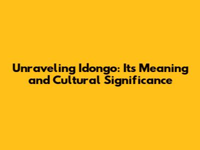 What Exactly Is Idongo? The Quest for a Definition