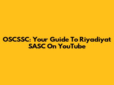 OSCSSC: Your Guide To Riyadiyat SASC On YouTube