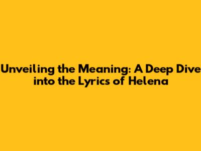 Hey everyone! Today, we're diving headfirst into the mesmerizing world of 'Helena', a song that's touched the hearts of many. We're going to unpack the lyrics, explore the deeper meanings, and maybe even uncover a few surprises along the way. So, grab your headphones, get comfy, and let's get started. This analysis will focus on understanding the lyrics and their interpretation. We will also discuss the possible meaning of the song for listeners.