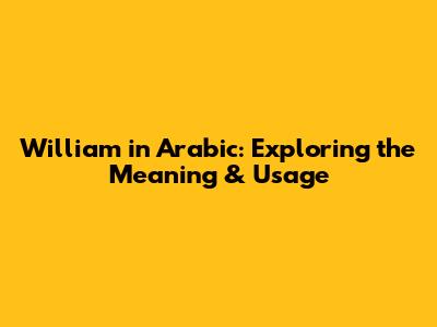 William In Arabic: Exploring The Meaning & Usage
