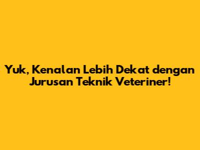 Hai, guys! Kalian penasaran gak sih, apa itu Jurusan Teknik Veteriner? Jurusan ini tuh keren banget, menggabungkan ilmu teknik dan kedokteran hewan. Jadi, buat kalian yang cinta banget sama hewan dan punya minat di bidang teknologi, jurusan ini bisa jadi pilihan yang pas banget! Di sini, kita bakal kupas tuntas tentang apa aja yang dipelajari, prospek kerjanya gimana, dan kenapa jurusan ini semakin diminati.